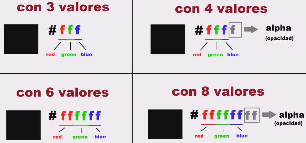 Nota: En CSS es necesario incluir el hashtag (#) al principio para definir el código hexadecimal como tal.