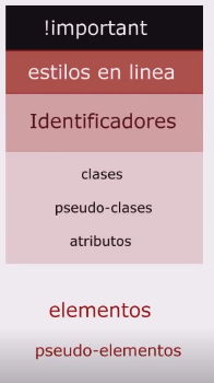 A continuación se muestra la tabla de jerarquías CSS