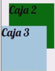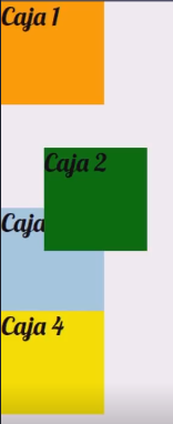 Como se puede apreciar en este ejemplo, la caja uno se encuentra desplazada a la derecha y hacia abajo; sin embargo, el espacio designado por defecto para ella le sigue perteneciendo.