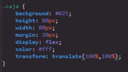 Realmente la propiedad transform es inmensa, con un gran número de posibles valores; en este apartado tan solo se tocaron los valores básicos, sin embargo existen muchas más posibilidades. Todas estas están definidas en este enlace, en caso de que se necesite o desee indagar más.
