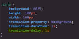 Nota: Esta propiedad no modifica el tiempo de duración de la transición, eso es un rol exclusivo de la propiedad transition-duration.