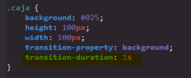 Al igual que transition-property, en esta propiedad se puede definir el tiempo de duración de más de una propiedad a la vez, simplemente se ingresa el segundo tiempo separado por una coma (,) del primero.