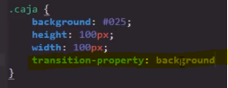 El propósito de esta propiedad es definir a cuál propiedad se aplicará la transición, para esto se ingresa el nombre de dicha propiedad como valor de Transition-property de la siguiente manera.