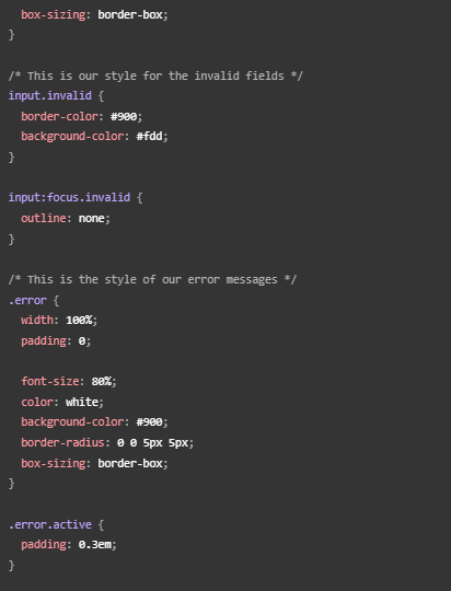 La primera diferenciación consiste en que la pseudo-clase ":invalid" es necesario definirla como una clase más, ya que al no trabajar con la API es necesario realizar la vinculación con esta de forma manual.
