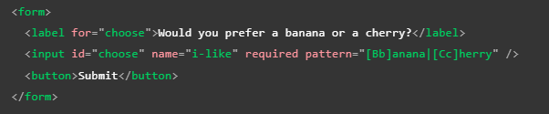 Nota: No todos los elementos input necesitan aplicar el atributo "pattern" para definir expresiones regulares, por ejemplo el elemento "email", el cual define que el texto ingresado en este concuerde con el formato de un correo electrónico.