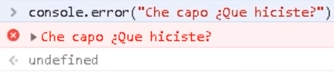 En este ejemplo se empleó la función console.log directamente en la consola del navegador, resultado en que inmediatamente después imprimiera el valor definido en esta.