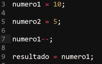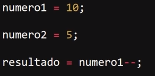 Este operador tiene la función de restar uno (-1) del valor al que se le aplique