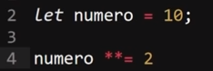El resultado de esta operación es 100, ya que el valor en la variable es la base de la operación (10) y el número asignado se convierte en su exponente (2) resultando en: 102, lo que es igual a 10 * 10 = 100.
