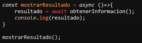 En este ejemplo la promesa retorna los datos con cierto retraso, sin embargo el elemento await garantiza que la función asíncrona no continúe ejecutándose hasta que la promesa que está en vigencia retorne su resultado, por lo que siempre se tendrá el control de que los elementos se ejecuten cuando se indique a diferencia de un bloque de código similar, pero que se base en la utilización de ".then()", en el cual la función mostrará los datos apenas los obtiene por lo que se mostrarán en desorden.