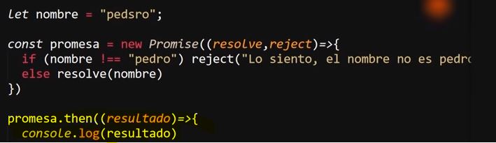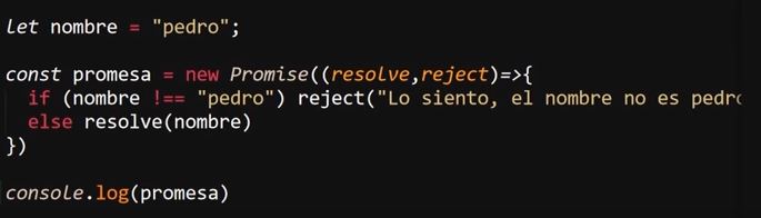 Nota: Los callbacks internos de la promesa ("resolve" y "reject") también pueden ser definidos con los nombres de "res" y de "rej".