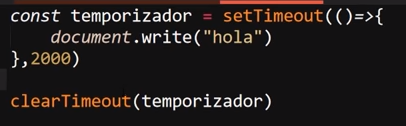 Para lo cual esta recibe como primer valor una función (ya sea el llamado a una función o una función flecha dentro de sus paréntesis), y como segundo valor recibe el tiempo de espera que se aplicará expresado en milésimas de segundo (1 seg = 1000).