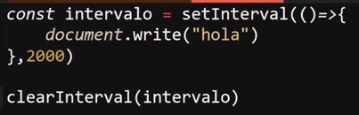 Para esto se guarda "setInterval" en una variable y se le aplica la función "clearInterval".