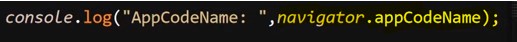 Esta propiedad retorna el nombre del navegador (no se trata de una propiedad precisa por lo que puede retornar un valor erróneo)