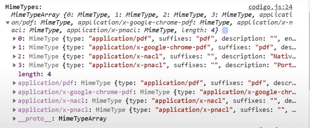 Esta propiedad retorna todos los "mimeTypes" que son aceptados por el navegador, es decir, este método retorna todos los tipos de metadatos que son aceptados por el navegador
