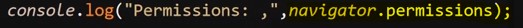 Esta propiedad retorna el objeto "Permissions", el cual nos permite acceder a cada uno de los permisos del navegador, por ejemplo micrófono, cámara, ventanas emergentes, etc.