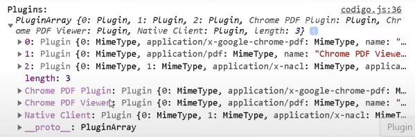 Esta propiedad retorna un "pluginArray", el cual contiene todos los plugins instalados en el navegador