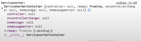 Esta propiedad retorna el objeto "serviceWorker", el cual se puede usar para trabajar con el "serviceWorker", sin embargo esto se define más adelante en el curso