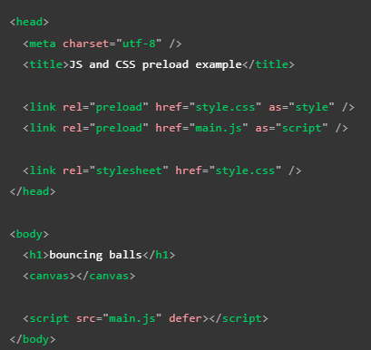 Existe una forma de asignar un elemento o dato para que sea tratado con prioridad por el navegador a la hora de cargar la página, para que de ese modo este recurso esté disponible al momento de que sea requerido. Este tipo de configuración se logra empleándolo en los metadatos de la página, más precisamente con el elemento "link", el cual posee el atributo "rel" que a su vez cuenta con el valor "preload".