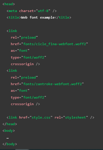 En este caso, el código precarga una imagen a través de dos elementos "link"; esto debido a que se está asignando el uso de cada uno para una circunstancia en particular. En base al ancho de la pantalla en la que se visualice la página, se procederá a precargar una imagen grande o una pequeña. La ventaja de hacer esto es que se aumentan las posibilidades de que el recurso esté disponible para la presentación de la página, reduciendo el FOUT (flash de texto sin estilo).