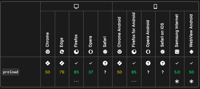Este ejemplo, aparte de simple, puede parecer trivial; sin embargo, los beneficios de implementar el "preload" se hacen notar a la hora de que los demás elementos HTML sean cargados. Por ejemplo, es útil seleccionar a los siguientes elementos para que sean precargados con antelación: