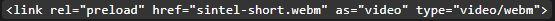 Por lo tanto, no es recomendable precargar varios recursos para un mismo elemento; para estos casos lo mejor simplemente es precargar el recurso que se crea que llegará a ser utilizado por la mayoría de los usuarios. Cabe señalar que esto no hará que el video.webm no esté disponible para los navegadores que lo requieran; de hecho, en el ejemplo HTML mostrado con anterioridad, ese código también hace que se precargue el video.webm, pero lo define de una forma que hará que este no sea precargado innecesariamente para todos los usuarios.