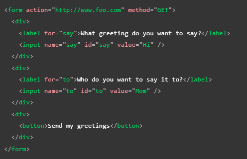 Este método de envío de datos se utiliza principalmente para aquellos casos en los que se realiza una solicitud de datos al servidor. En estos casos el navegador envía una consulta con un cuerpo vacío, lo que resulta en que cualquier dato de un formulario que se envíe a través de este método será indexado a la URL destino; es decir, en el caso de que se envíe información con un método GET, estos datos se enviarán a través de la URL por lo que serán visibles, lo que no lo hace una buena opción para enviar información delicada. Un ejemplo de uso sería el siguiente: