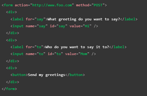 Como ejemplo vamos a tomar el HTML mostrado anteriormente pero con el valor "POST" en el atributo "method":